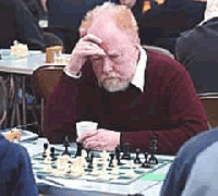He was a pretty strong player, being graded 149 in the July 2012 list, having been up to, I think, 156 a year or two back. He regularly played the English as white, and was fond of the O’Kelly variation of the Sicilian as black. I will miss his devilish chuckle when finding the winning move in friendly games.